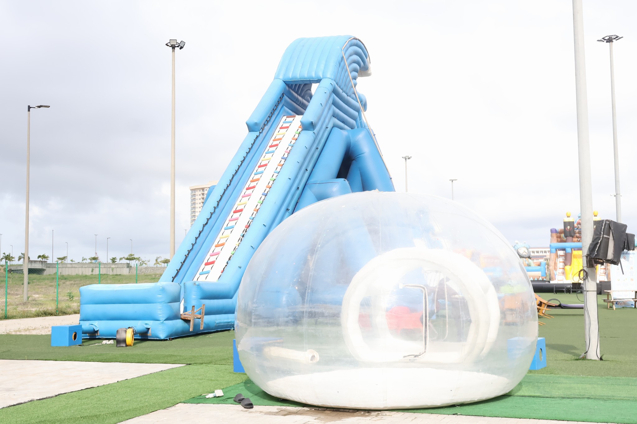 • Dry Land Zone featuring activities such as large bouncy castles with obstacles, a 40-seater carousel, a train ride, and traditional games like snooker and table tennis.