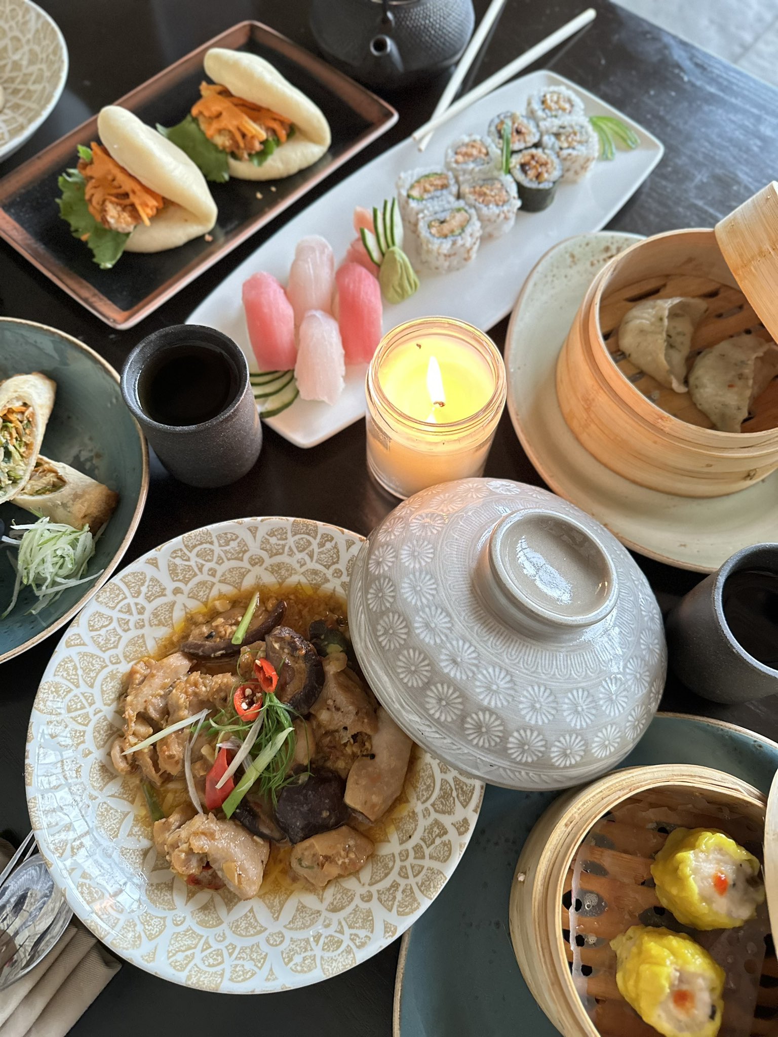 They offer a fusion of Japanese, Chinese, and Korean cuisines, including sushi, dim sum, and various main courses.