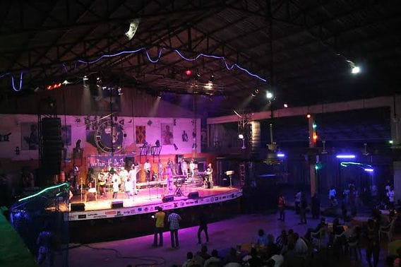 The New Afrika Shrine is an open-air entertainment center and the spiritual home of Afrobeat music, founded by Fela Kuti's children, Femi and Yeni Kuti.