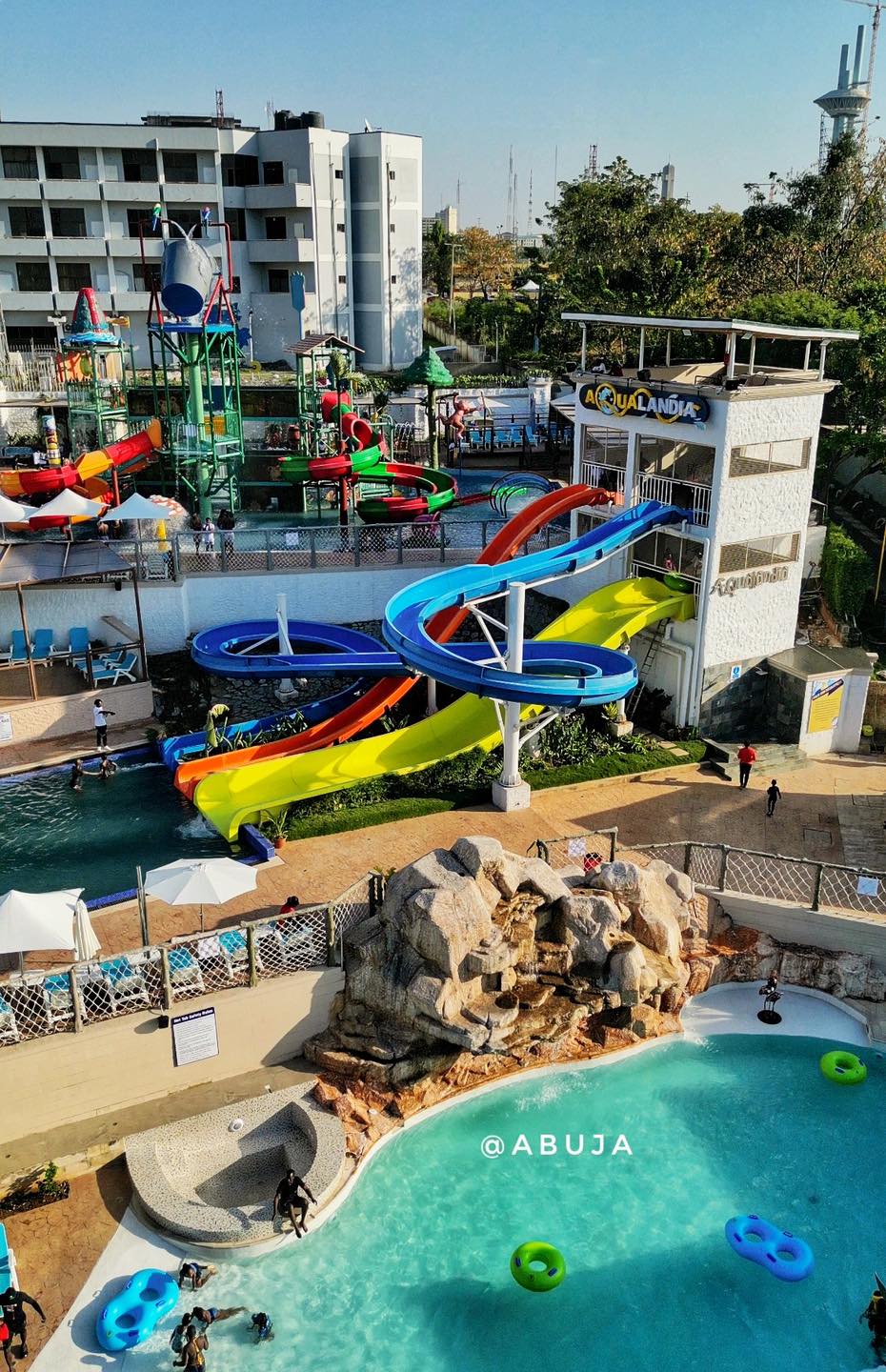 Aqualandia Waterpark and Pool is a thrilling water park located within Central Park, Abuja. It is a family-friendly destination featuring an exhilarating collection of water slides, swimming pools, and splash pads, designed to provide a refreshing and memorable day out.