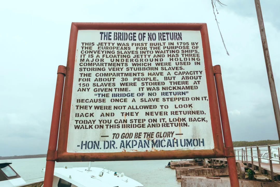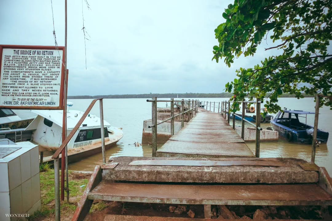 The Bridge of No Return in Ikot Abasi, Akwa Ibom State, served as the final departure point for enslaved Africans being shipped to Europe and the Americas. It is a sombre historical landmark on the banks of the Imo River that was originally a floating jetty built by Europeans in 1795. Its name tells the heartbreaking reality that once captives crossed this bridge and boarded the waiting ships, they never returned to their homeland. The site remains an important relic of the Transatlantic Slave Trade era.