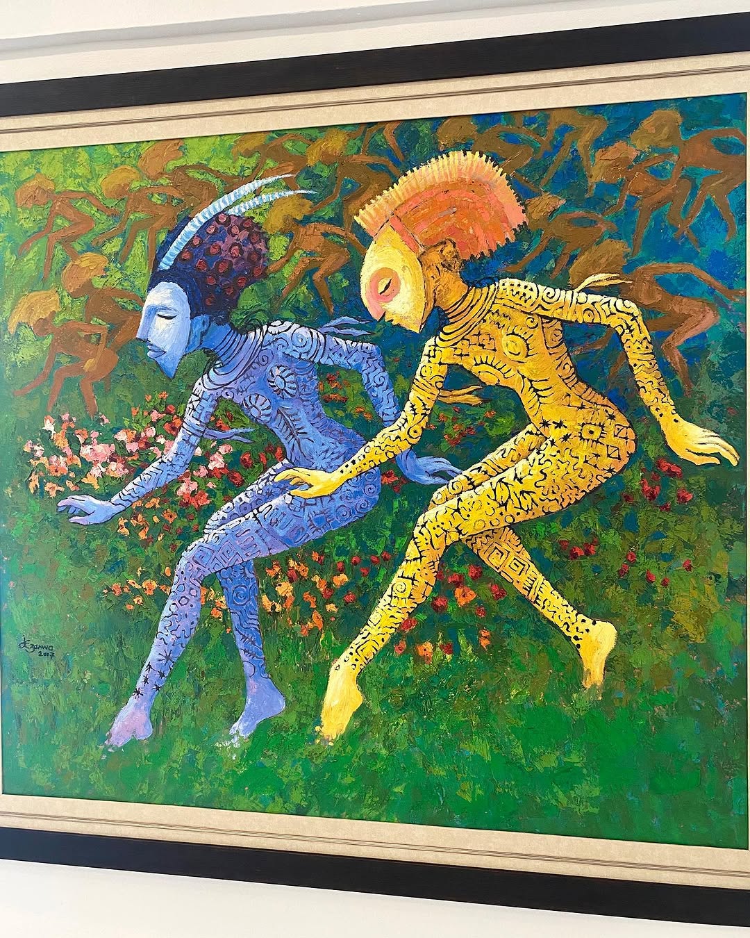 You can expect to see a mix of contemporary and modern art, including paintings, sculptures, textiles, and photography.